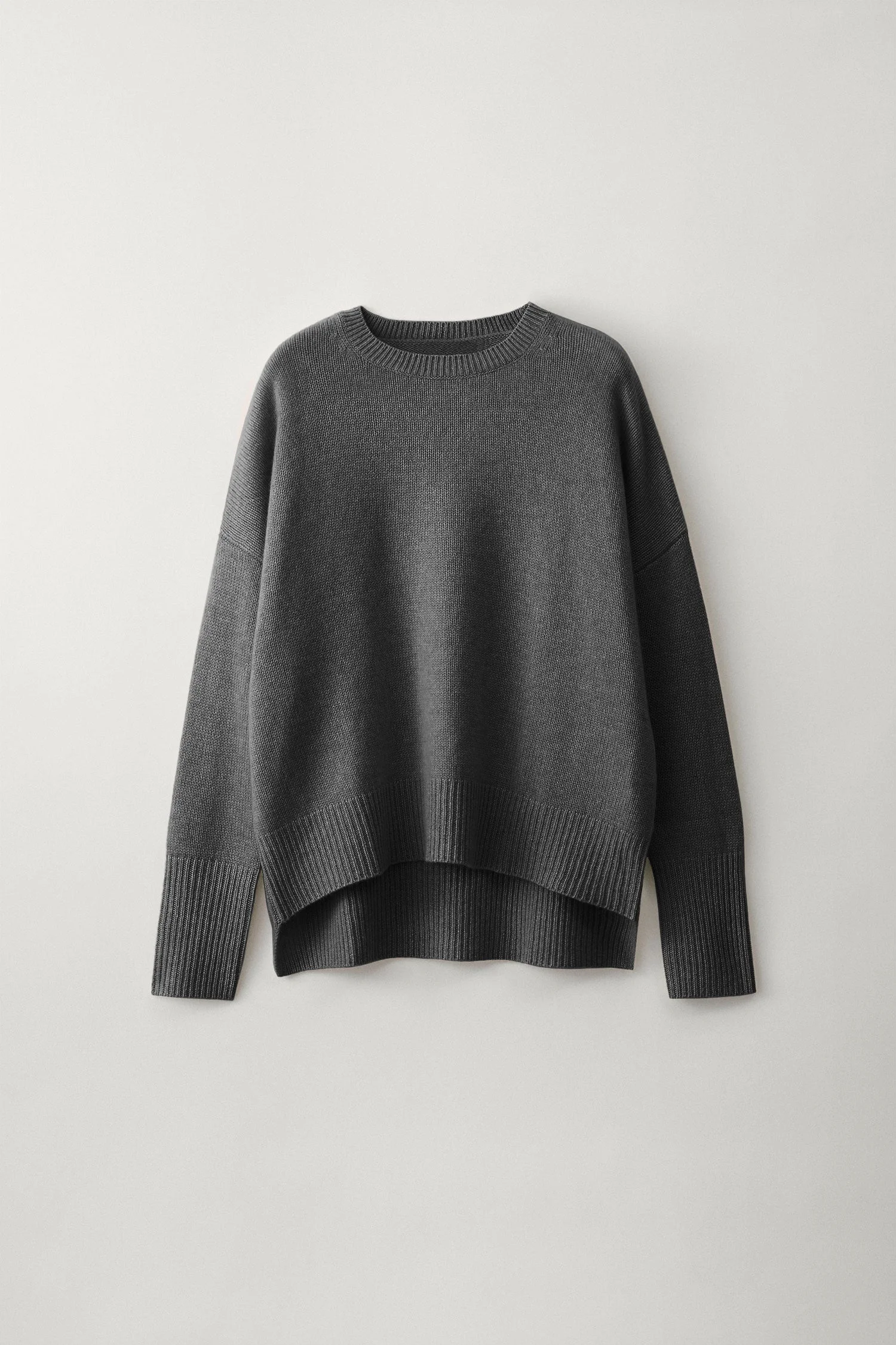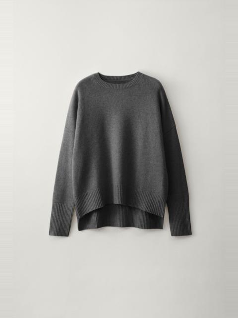 A directional crewneck, the Mila sweater is crafted in substantial, heavy knit cashmere. Draping the body with its relaxed silhouette, the sweater is defined by dropped shoulders, full-length sleeves and a graphic hem which extend to longer lengths at the back. DETAILS Knit type: Plain Knit Gauge: 7 Weight: 340g Composition: 100% organic cashmere SIZE GUIDE * European sizing * Designed for a relaxed fit * The model is 178 cm/5’10” tall and wears a size 1 Our sizes: Size 0: XS Size 1: S-M Size 2: M-L Mila's measurements: Size 0: * Front length: 56 cm * Back length: 62 cm * Chest: 61 cm Size 1: * Front length: 58 cm * Back length: 64 cm * Chest: 64 cm Size 2: * Front length: 61 cm * Back length: 67 cm * Chest: 68 cm
