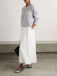 EDITORS'NOTES Lisa Yang's 'Mallory' sweater is knitted from soft brushed-cashmere in a tonal-gray melange that'll go with almost everything. It has a relaxed fit tempered by ribbed trims and a classic V-neckline. Wear yours solo or underpinned with a crisp shirt. SIZE & FIT Model measurements: - Size 0 = XS-S, 1 = S-M, 2 = M-L - Fits true to size, take your normal size - Designed for a relaxed fit - Mid-weight knit - Model is 180cm/ 5'11" and is wearing the designer's size 0 - Bust: 80cm/ 31.5" - Waist: 65cm/ 25.5" - Hip: 89cm/ 35" DETAILS & CARE - Light-gray melange cashmere - Slips on - 100% cashmere - Dry clean