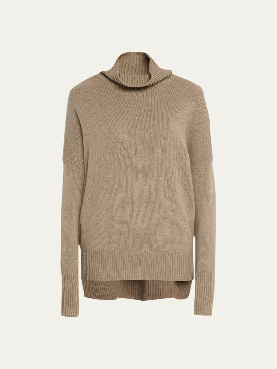 Lisa Yang "Heidi" sweater. Ribbed neck, cuffs, and hem. Turtleneck. Long sleeves. Dropped shoulders. Relaxed fit. Pullover style. Cashmere. Imported. Model is 5'10"/177cm. Online Inquiries: BGS21_T4VTG| Store Inquiries: #4042620
