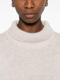 high-neck sweater Highlights - Beige - High neck - Long sleeves - Ribbed cuffs - Ribbed hem - Boxy shape Imported Composition Cashmere 100% SIZE & FIT Model measurements Height 5 ft 10 in(1.78 m) Bust/Chest 31.49 in(80 cm) Hips 37 in(94 cm) Waist 23.62 in(60 cm) Washing instructions Read Manufacturer Guidelines