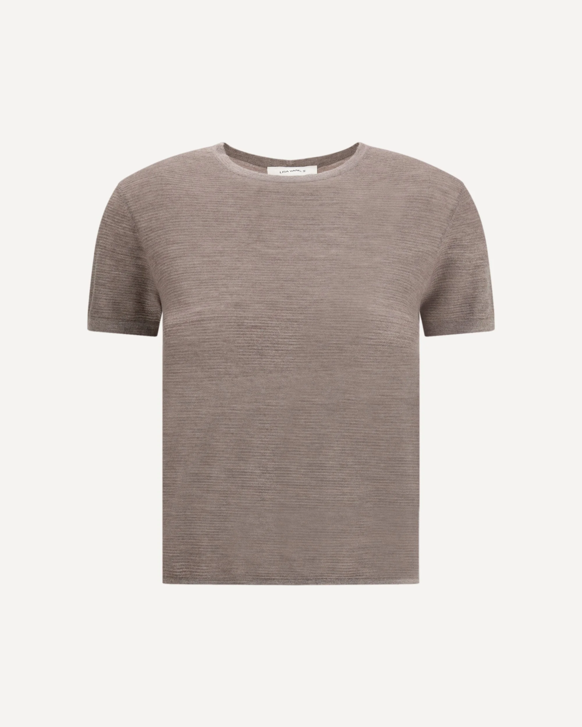The Ira T-shirt by Lisa Yang is crafted from featherlight 18-gauge fine-knit cashmere, defined by a delicate hand and a subtle sheer effect created through its reverse horizontal rib. The fitted silhouette follows the body with ease, enhanced by a clean round neckline and neat short sleeves. Ideal as an elegant layering piece or a year-round essential, it reflects Lisa Yang’s refined and minimalist approach. DETAILS - Sku: 2025101_DF - Season: SS26 - Fit: Slim - Composition: GENERAL 100% Kashmir/capra Hircus - MADE IN CHINA