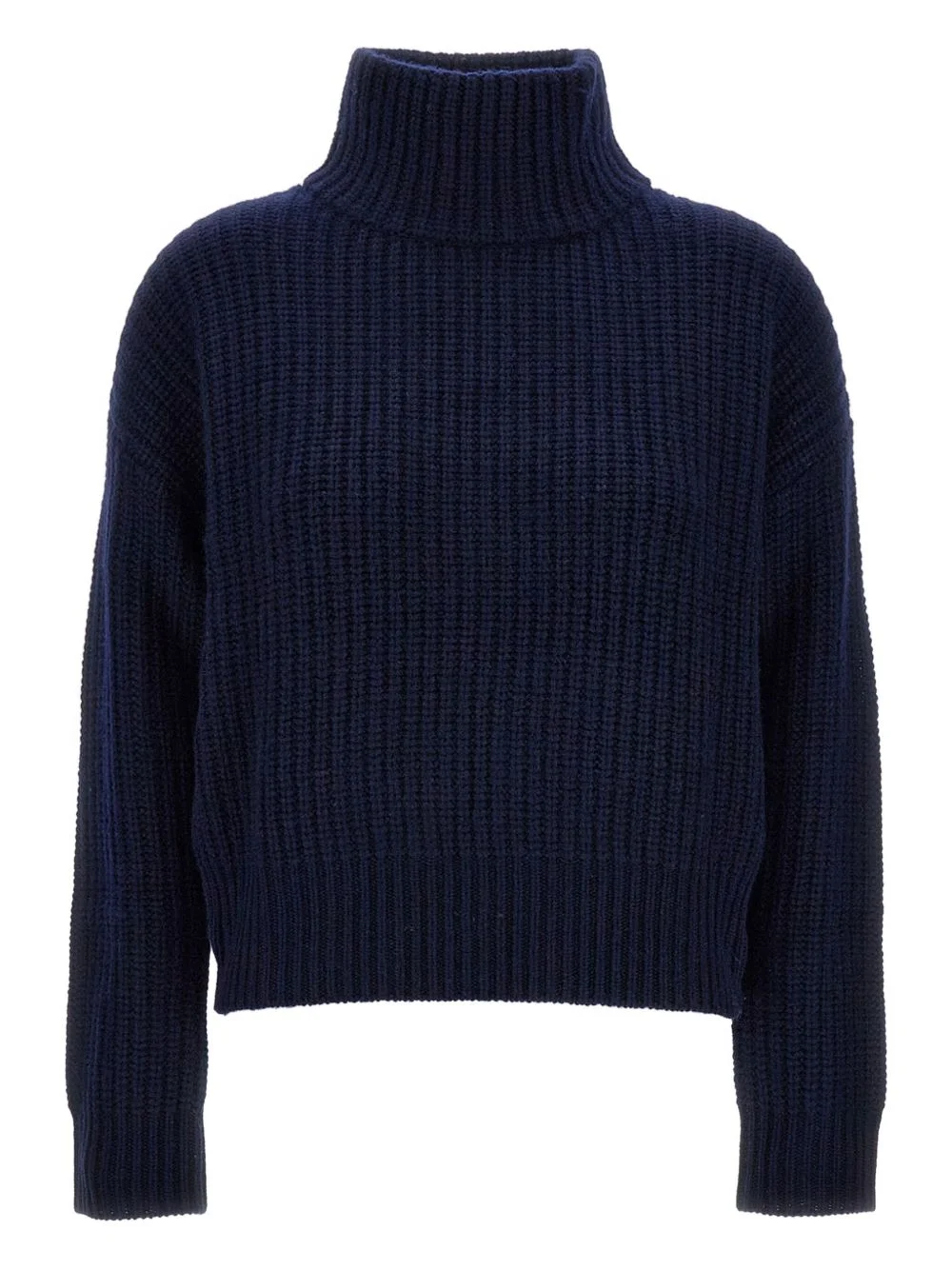 high-neck ribbed sweater Highlights - Blue - Ribbed knit - High neck - Long sleeves - Wool Imported Composition Cashmere 100% Washing instructions Read Manufacturer Guidelines
