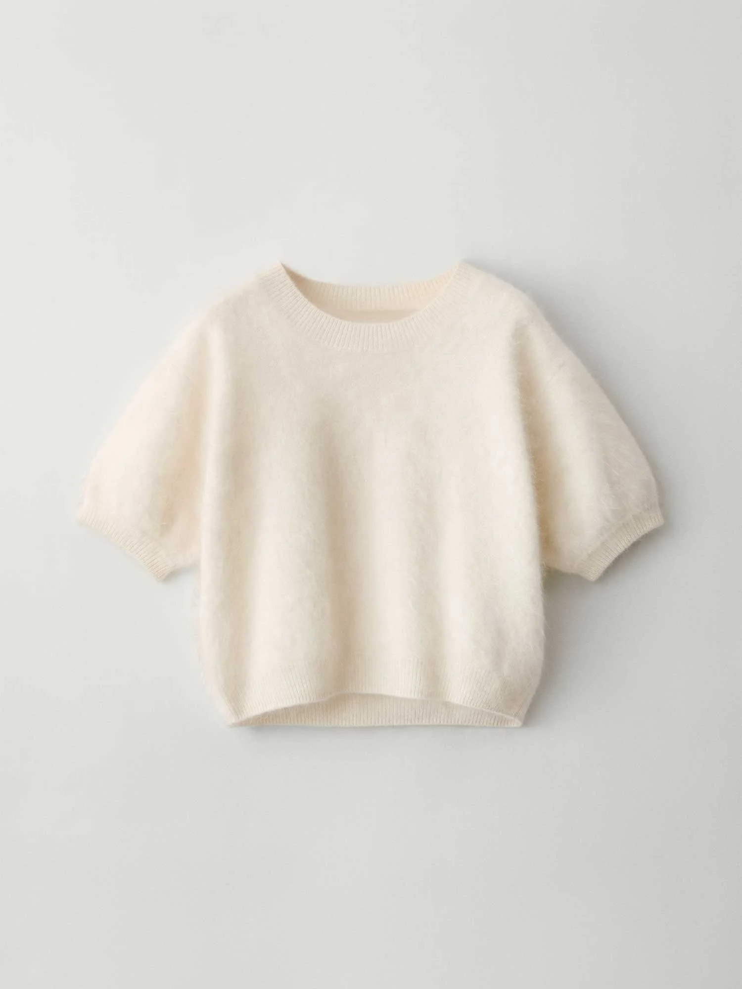 <!--td {border: 1px solid #cccccc;}br {mso-data-placement:same-cell;}--> A crewneck top, the Juniper sweater is knitted in our signature brushed cashmere with a soft, cloud-like texture. The generous fit, slightly cropped silhouette is complete with a crew neck, dropped shoulders and short sleeves. Styled here with Asta skirt. DETAILS Knit type: Brushed Weight: 275g Composition: 100% organic cashmere SIZE GUIDE * European sizing * Designed for a regular fit * The model is 178 cm/5’10” tall and wears a size 1 Our sizes: 0: XS 1: S-M 2: M-L
