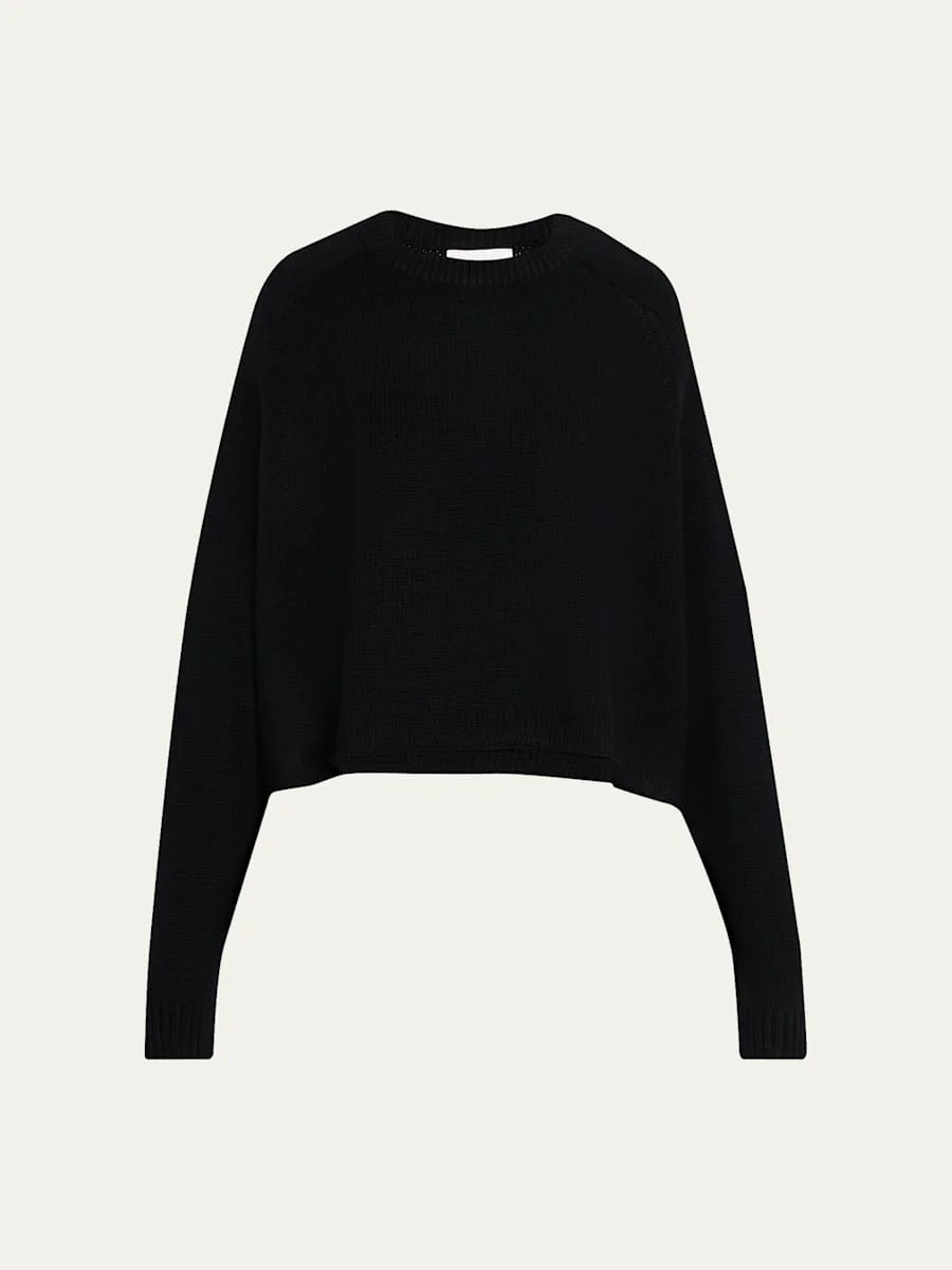 Crafted from soft cashmere knit, the "Karine" sweater from Lisa Yang features a rolled hem Crew neckline Long raglan sleeves Loose fit Hip length Pullover style Cashmere Imported