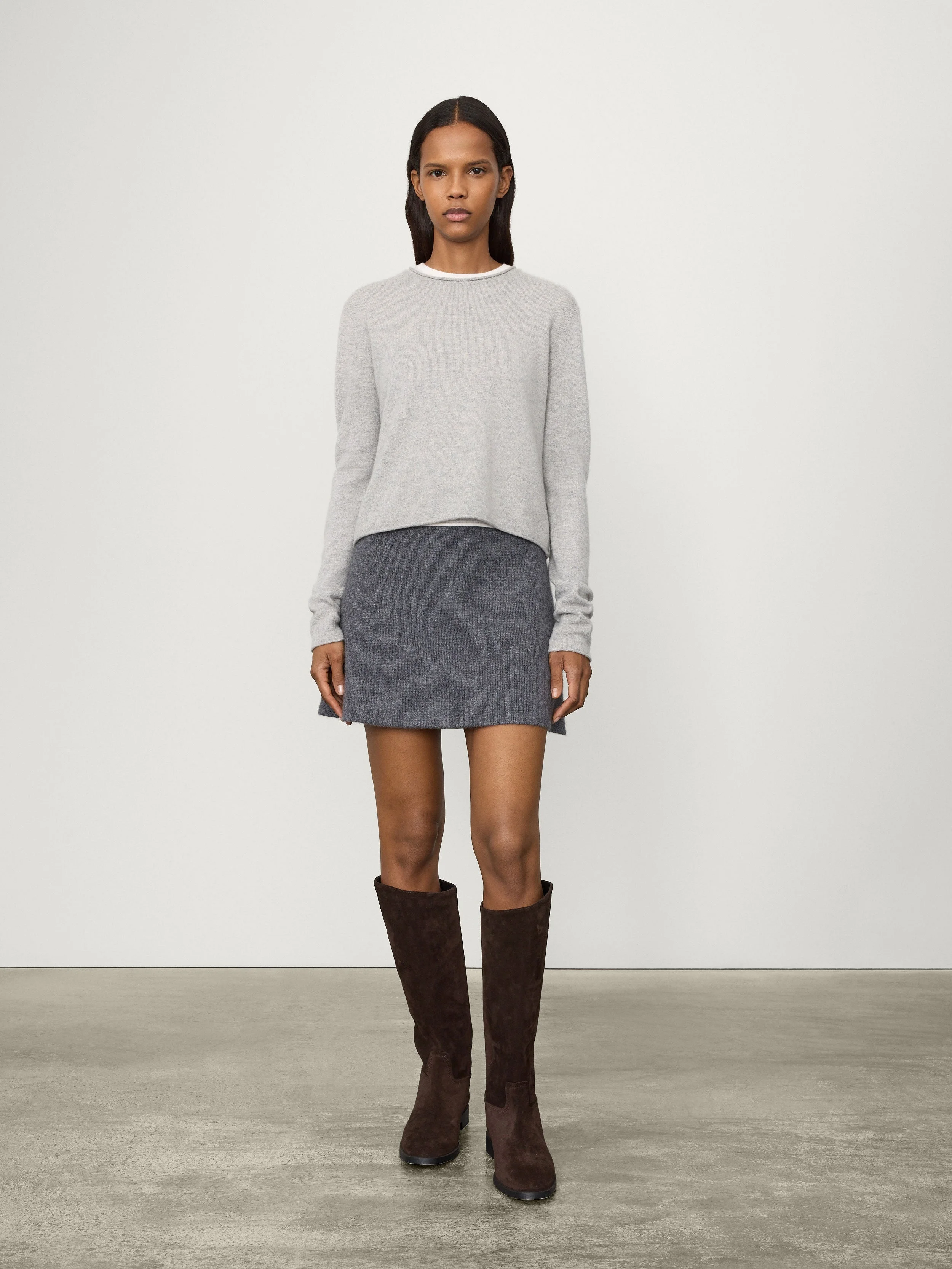 A petite piece with textured accents, the Ida sweater is crafted in soft, mid-weight cashmere for perennial wear. The regular fit and slim, cropped body is contrasted by extended sleeves that drape at the wrists, accentuated by softly rolled edges. DETAILS Knit type: Plain Knit Gauge: 12 Weight: 165g Composition: 100% organic cashmere SIZE GUIDE * European sizing * Designed for a slim, cropped fit * The model is 176 cm/5'9" tall and wears a size 1 Our sizes: Size 0: XS Size 1: S-M Size 2: M-L Ida's measurements: Size 0: * Body length: 48 cm * Chest: 46 cm Size 1: * Body length: 50 cm * Chest: 48 cm Size 2: * Body length: 52 cm * Chest: 50 cm