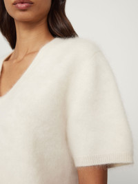 A brushed cashmere sweater, the Lovisa T-shirt is cloud-like in texture with a light and lofty feel. The regular fit silhouette is framed by a v-neck, short sleeves and a straight hem, neatly finished with ribbed edges. DETAILS Knit type: Brushed Composition: 100% cashmere Weight: 285g SIZE GUIDE * Based on European sizing * Designed for a regular fit * The model is 180 cm/5’11” tall and wears a size 1 Our sizes: 0: XS 1: S-M 2: M-L
