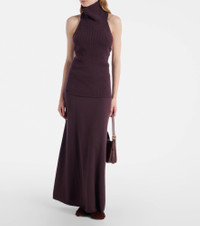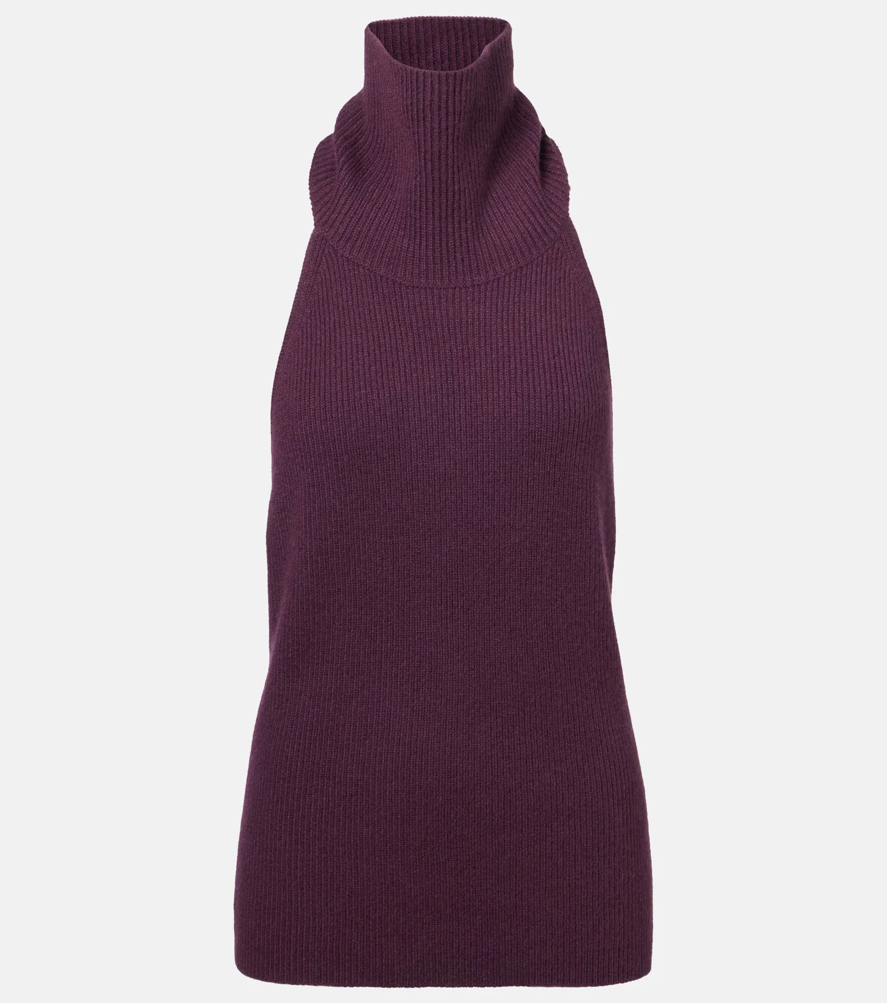 Designed in Stockholm and produced in Inner Mongolia, Lisa Yang's knitwear draws inspiration from Scandinavian minimalism and the designer's Chinese heritage. The Maddie top is made from cashmere to an open-back turtleneck silhouette. Product Details - Material: 100% cashmere - Care instructions: hand wash - Made in China - Designer color name: Mahogany - Item color: purple - Collar: turtleneck - Item number: P01069860 Size & Fit - True to size - Low back - Fitted - Stretchy fabric - Falls to the hip - The model seen in the picture is 178cm-5'10" and wearing a size 0