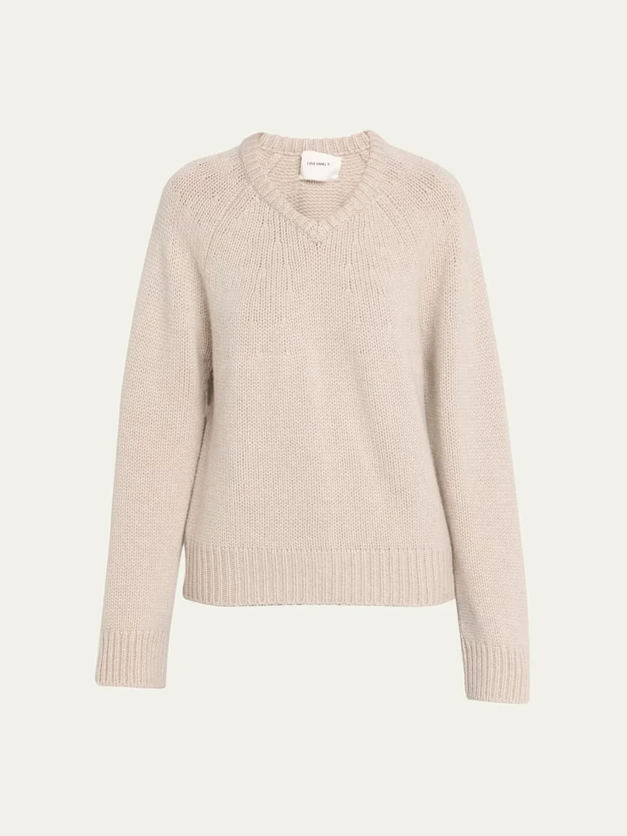 Lisa Yang "Oia" sweater is crafted from soft cashmere knit V neckline Long raglan sleeves Loose fit Ribbed cuffs and hem Pullover style Cashmere Imported