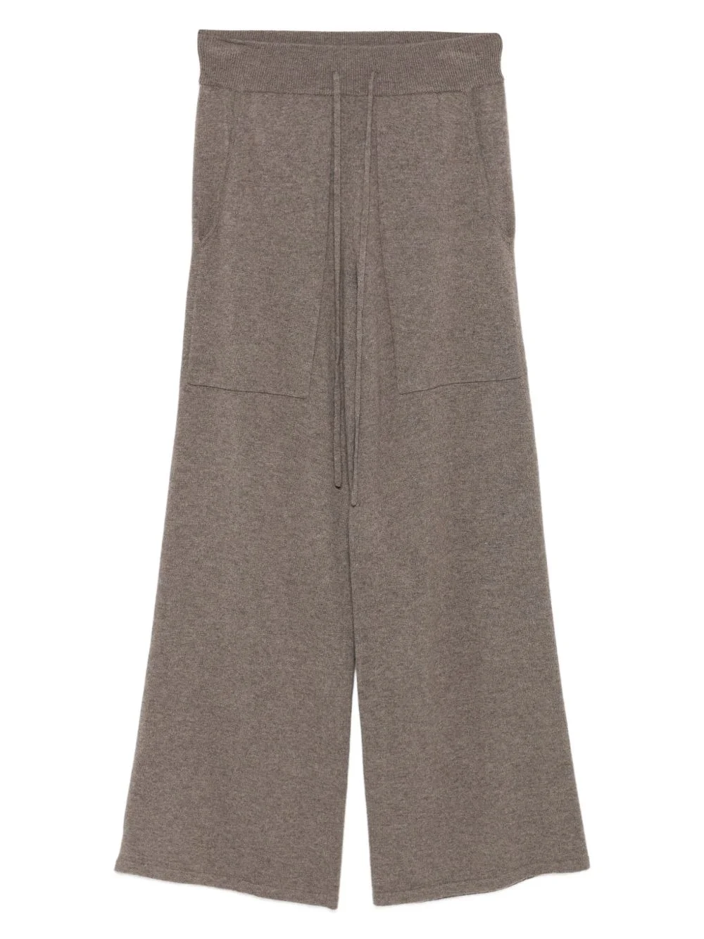 drawstring trousers Highlights - Brown - Cashmere - Drawstring fastening - Side pockets - Wide leg - Ribbed waistband Imported Composition Cashmere 100% SIZE & FIT Model measurements Height 5 ft 10 in(1.78 m) Bust/Chest 31.49 in(80 cm) Hips 37 in(94 cm) Waist 23.62 in(60 cm) Washing instructions Read Manufacturer Guidelines