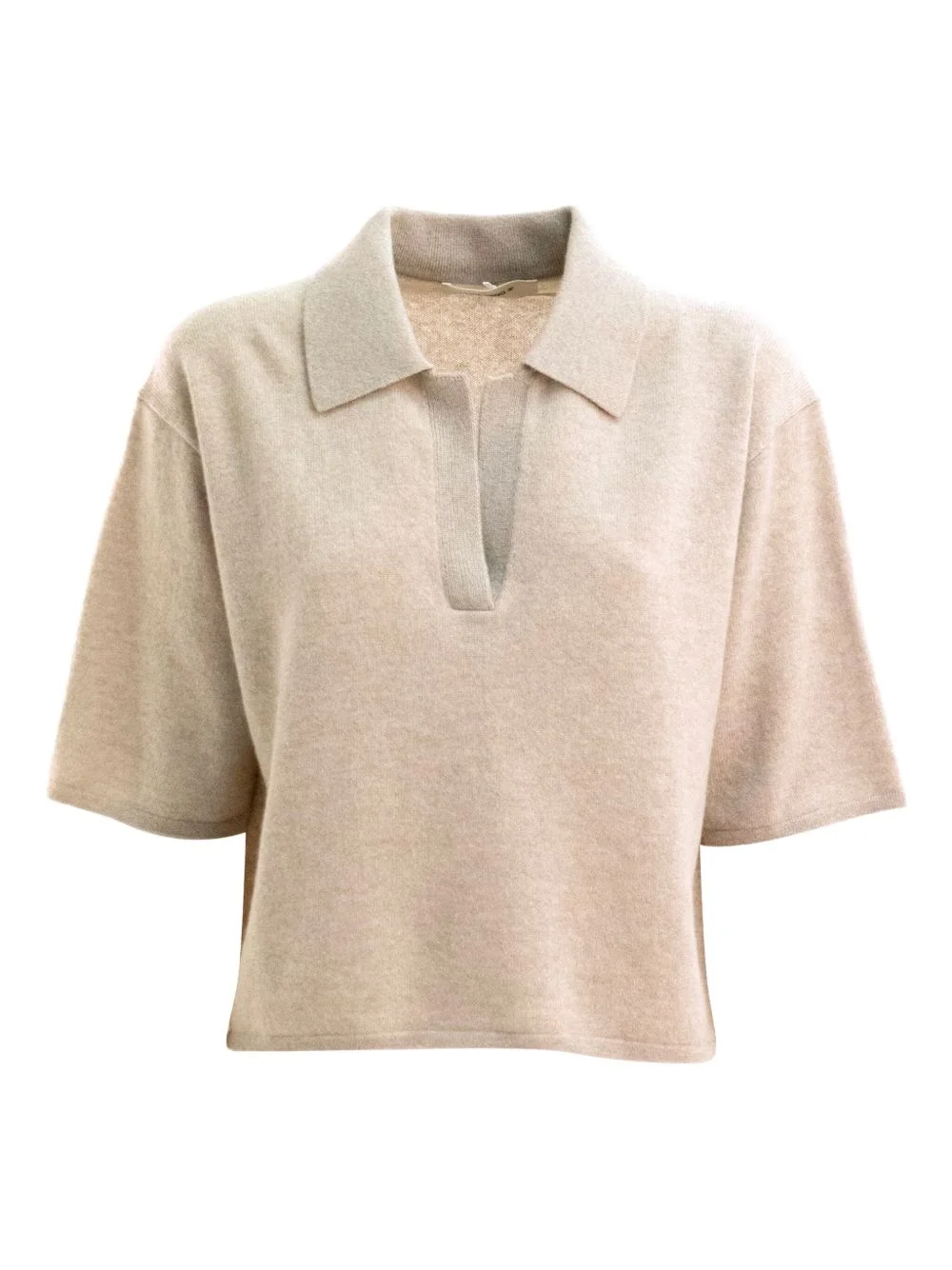 polo-neck cashmere top Highlights - Beige - Polo neck - Short sleeves - Cashmere - Ribbed trims Imported Composition Cashmere 100% Washing instructions Read Manufacturer Guidelines
