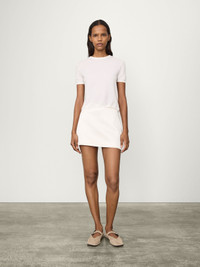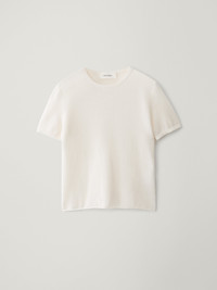 In our signature featherlight, fine-knit 18 gauge cashmere, the Ira t-shirt is detailed by a reverse-horizontal rib that lends a slightly sheer look. The fitted silhouette is detailed by a neatly rounded neckline, short sleeves and close-to-body fit. Pair back as a layering piece and reach for it as a wardrobing staple throughout the year. DETAILS Knit type: Fine Knit Gauge: 18 Weight: 95g Composition: 100% cashmere SIZE GUIDE * Based on European sizing * Designed for a close fit * The model is 176 cm/5'9" tall and wears a size 1 Our sizes: Size 0: XS Size 1: S-M Size 2: M-L