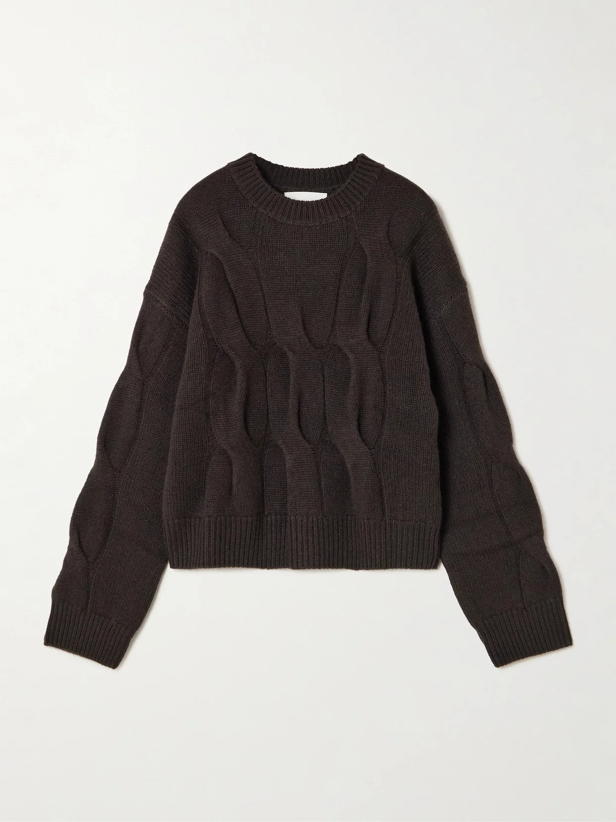 Lisa Yang's 'Sammie' sweater is made from Mongolian cashmere, which is of exceptional quality. It's knitted with wide cable stitching that twists elegantly.