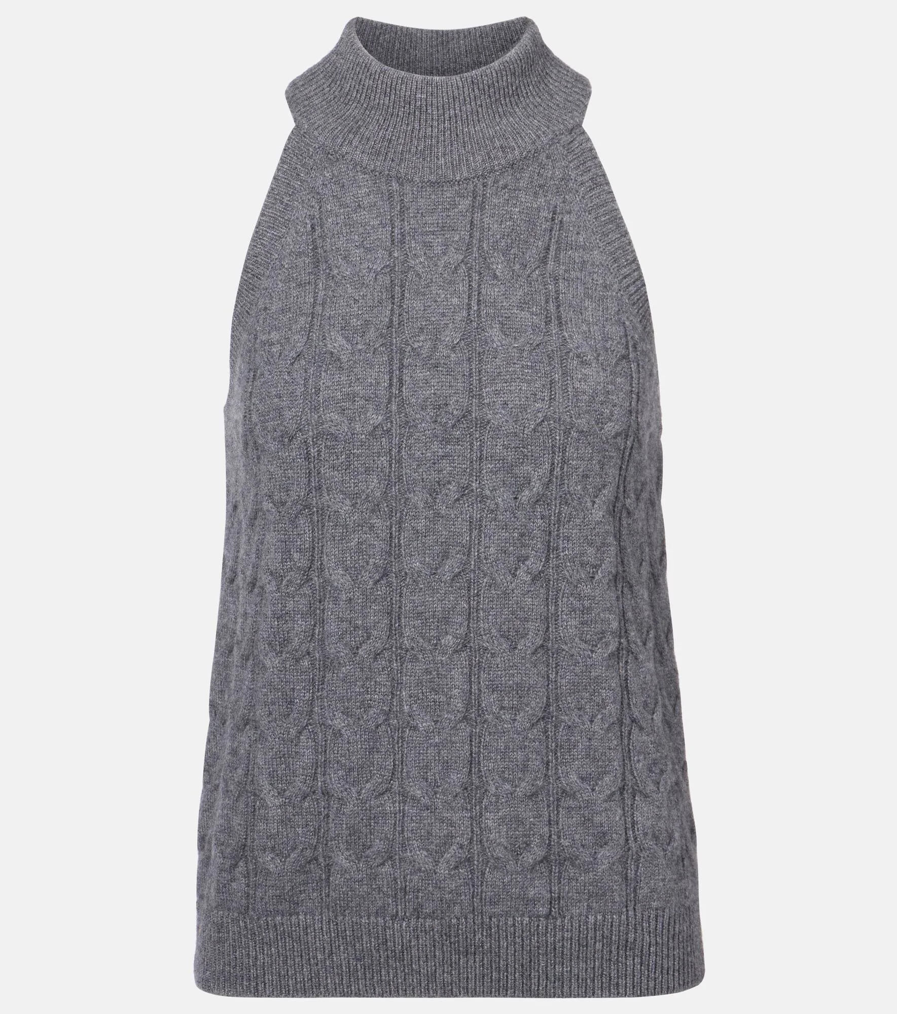 Designed in Stockholm and produced in Inner Mongolia, Lisa Yang's knitwear draws inspiration from Scandinavian minimalism and the designer's Chinese heritage. The Serafine top is made from cashmere to a cable-knit halterneck silhouette. Product Details - Material: 100% cashmere - Care instructions: hand wash - Made in China - Designer color name: Graphite - Item color: gray - Collar: mockneck - Hem: ribbed - Item number: P01069877 Size & Fit - True to size - Straight fit - Stretchy fabric - Falls to the hip - The model seen in the picture is 178cm-5'10" and wearing a size 0