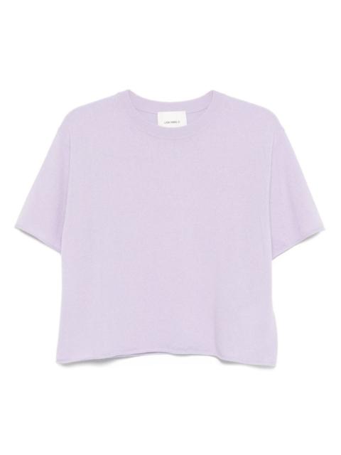 short-sleeve cashmere knit top Highlights - Light purple - Cashmere - Short sleeves - Round neck - Cropped hem - Straight hemline Imported Composition Cashmere 100% SIZE & FIT Model measurements Height 5 ft 10 in(1.78 m) Bust/Chest 33.46 in(85 cm) Hips 36.22 in(92 cm) Waist 23.22 in(59 cm) Washing instructions Hand Wash