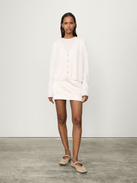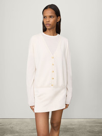 A transseasonal staple, the Abby cardigan is knitted in soft, mid-weight cashmere for year-round wear. The relaxed silhouette is framed by dropped shoulders, a deep v-neck and full-length sleeves, and finished with ribbed trims as a subtle design detail. DETAILS Knit type: Plain Knit Gauge: 12 Weight: 205g Composition: 100% cashmere SIZE GUIDE * European sizing * Designed for a regular fit * The model is 176 cm/5'9" tall and wears a size 1 Our sizes: 0: XS 1: S-M 2: M-L Abby's measurements: Size 0: * Body length: 52 cm * Chest: 57 cm Size 1: * Body length: 53 cm * Chest: 60 cm Size 2: * Body length: 54 cm * Chest: 63 cm