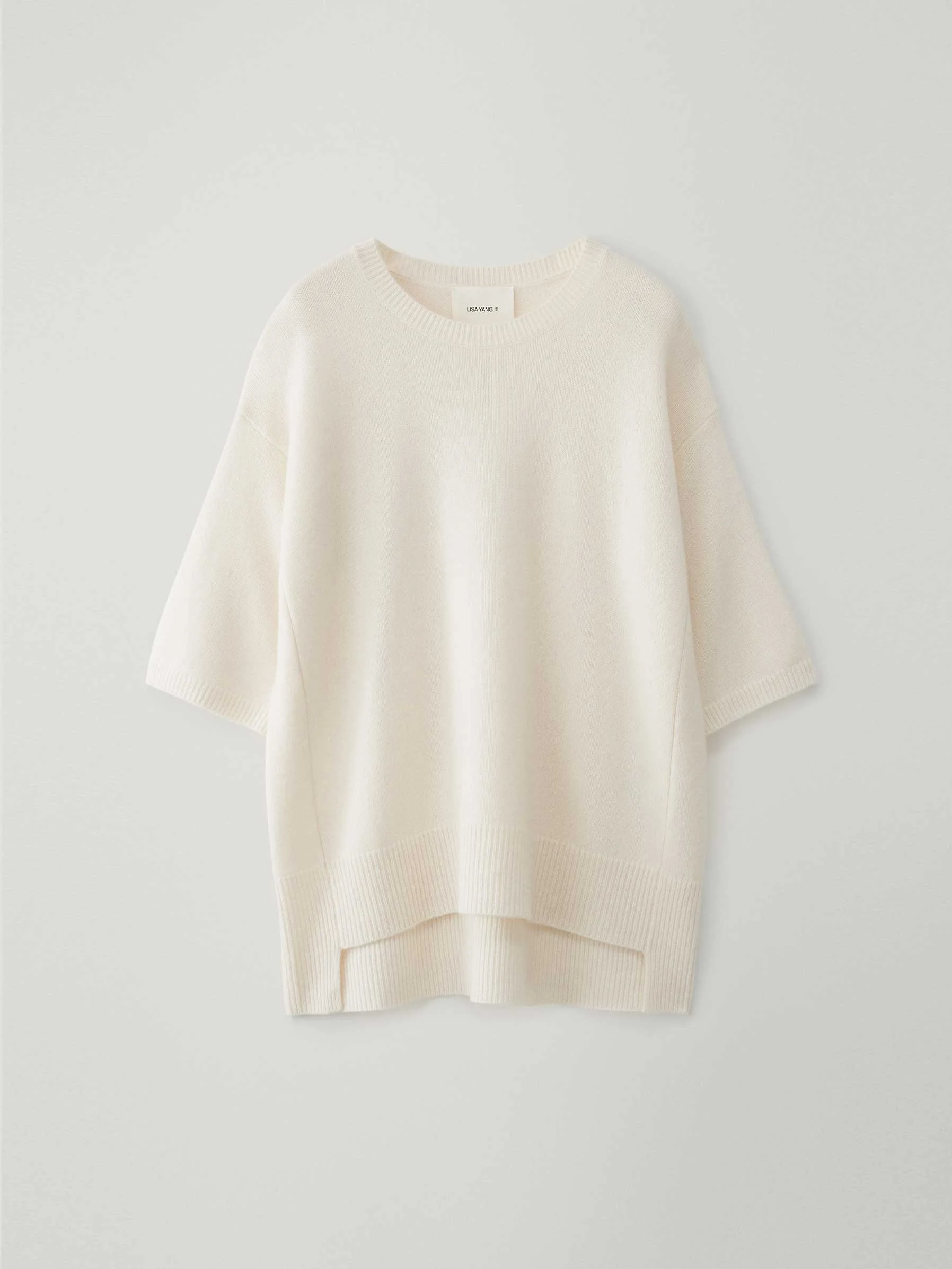 A feminine crewneck, the Camille sweater is crafted in plush, heavy knit cashmere that feels rich to the touch. The relaxed silhouette is framed by a round neck, dropped shoulders and three-quarter length sleeves, complete with a graphic step hemline which is longer at the back. DETAILS Knit type: Plain Knit Gauge: 7 Weight: 285g Composition: 100% organic cashmere SIZE GUIDE * European sizing * Designed for a relaxed fit * The model is 176 cm/5'9" tall and wears a size 1 Our sizes: Size 0: XS Size 1: S-M Size 2: M-L Camille's measurements: Size 0: * Front length: 60 cm * Back length: 66 cm * Chest: 58 cm Size 1: * Front length: 62 cm * Back length: 68 cm * Chest: 60 cm Size 2: * Front length: 64 cm * Back length: 70 cm * Chest: 62 cm