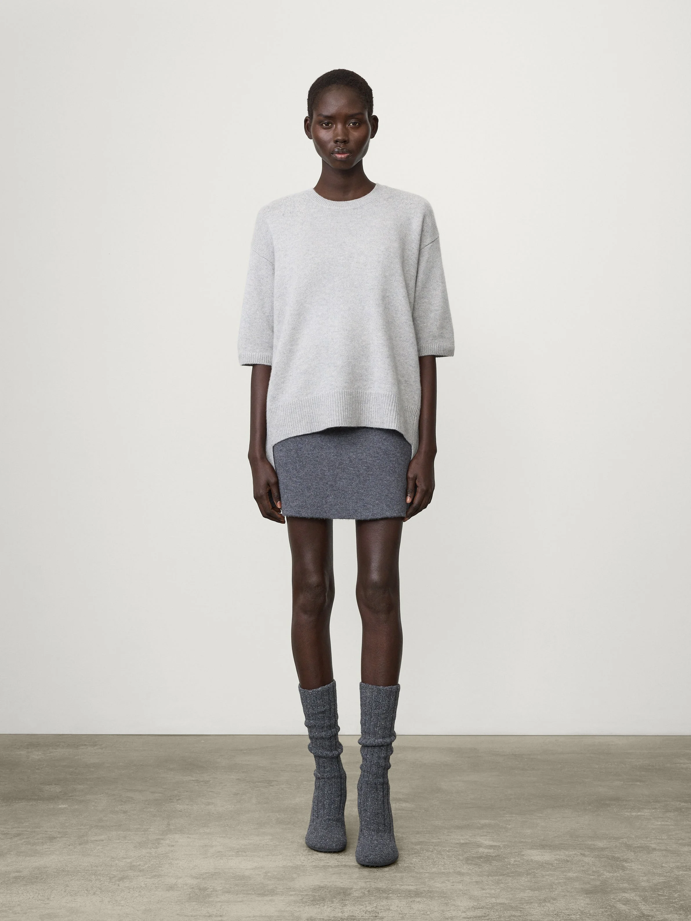 A feminine crewneck, the Camille sweater is crafted in plush, heavy knit cashmere that feels rich to the touch. The relaxed silhouette is framed by a round neck, dropped shoulders and three-quarter length sleeves, complete with a graphic step hemline which is longer at the back. DETAILS Knit type: Plain Knit Gauge: 7 Weight: 285g Composition: 100% organic cashmere SIZE GUIDE * European sizing * Designed for a relaxed fit * The model is 178 cm/5’10” tall and wears a size 1 Our sizes: Size 0: XS Size 1: S-M Size 2: M-L Camille's measurements: Size 0: * Front length: 60 cm * Back length: 66 cm * Chest: 58 cm Size 1: * Front length: 62 cm * Back length: 68 cm * Chest: 60 cm Size 2: * Front length: 64 cm * Back length: 70 cm * Chest: 62 cm