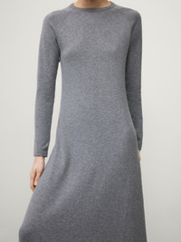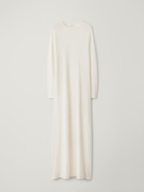 A dress with maxi proportions, the Eliora dress is crafted in our fine knit cotton cashmere composition suggestive of jersey. The regular fit piece skims the body in a slightly A-line silhouette that feels both light and enveloping, and features a crew neck, full raglan sleeves and a floor-gracing skirt with ribbed trims. DETAILS Knit type: Cotton Cashmere Gauge: 16 Weight: 320g Composition: 70% cotton, 30% cashmere SIZE GUIDE * European sizing * Designed for a regular fit * The model is 179 cm/5’10.5” tall and wears a size 1 Our sizes: Size 0: XS Size 1: S-M Size 2: M-L