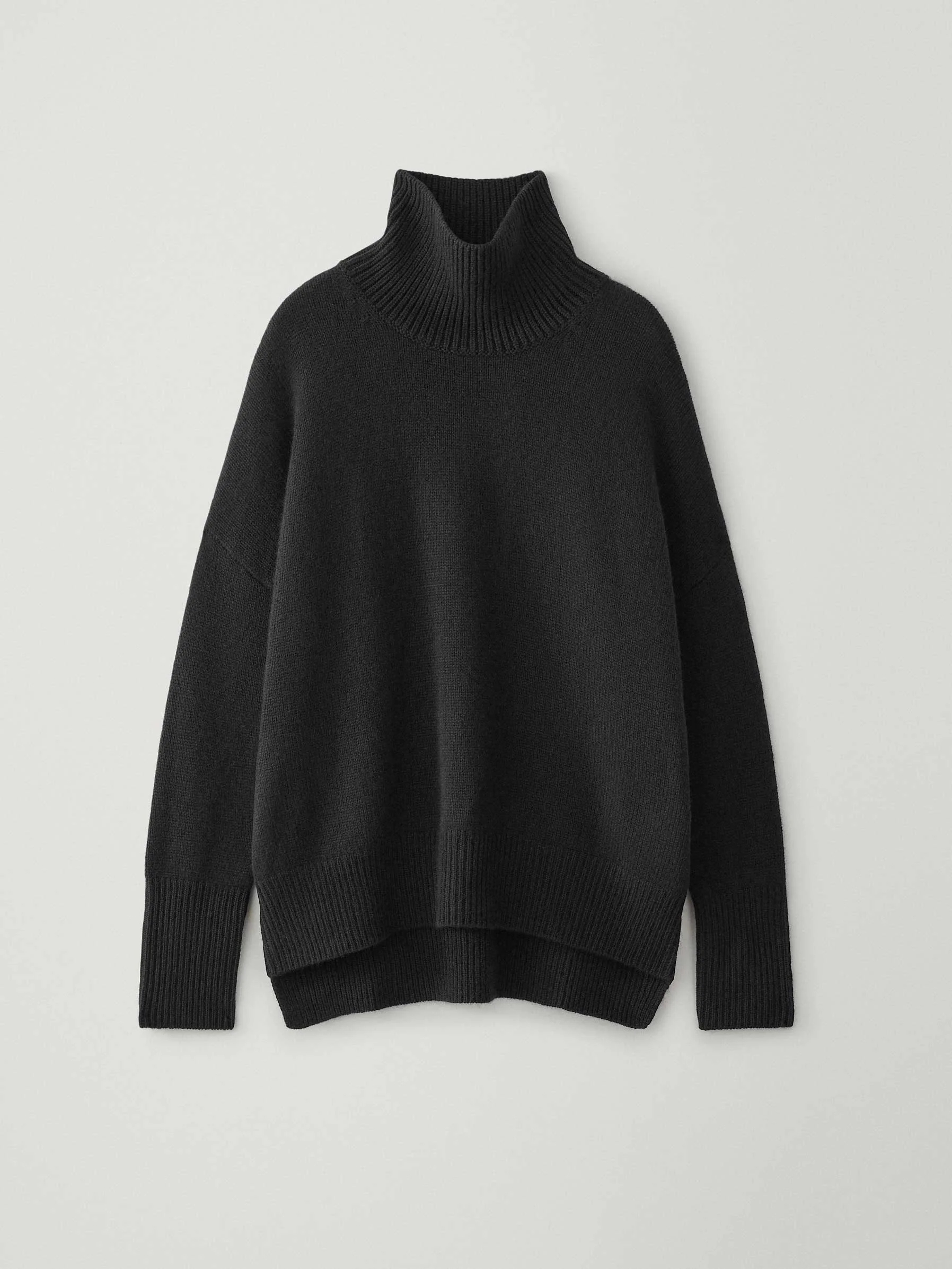 A play on proportions, the Heidi sweater is crafted in rich, heavy knit cashmere. The cocooning silhouette is made more inviting by an enveloping high neck, dropped shoulders, full-length sleeves and a hemline which falls to longer lengths at the back. DETAILS Knit type: Plain Knit Gauge: 7 Weight: 400g Composition: 100% organic cashmere SIZE GUIDE * European sizing * Designed for a relaxed fit * The model is 180 cm/5’11” tall and wears a size 1 Our sizes: Size 0: XS Size 1: S-M Size 2: M-L Heidi's measurements: Size 0: * Front length: 58 cm * Back length: 63,5 cm * Chest: 62,5 cm Size 1: * Front length: 60 cm * Back length: 65,5 cm * Chest: 64,5 cm Size 2: * Front length: 62 cm * Back length: 67,5 cm * Chest: 67 cm