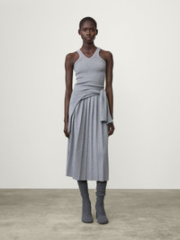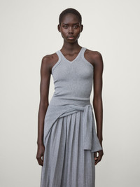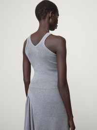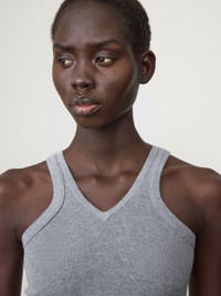 A bodycon-inspired tank, the Jai top is knitted in our cotton cashmere composition with a fine single rib pattern. The fitted silhouette is designed to enhance the feminine form, shaped by a racer front and finished with ribbed trims and a cropped full needle hem. DETAILS Knit type: Cotton Cashmere Gauge: 16 Weight: 170g Composition: 70% cotton, 30% cashmere SIZE GUIDE * European sizing * Designed for a close fit * The model is 177 cm/5’9.5” tall and wears a size 1 Our sizes: Size 0: XS Size 1: S-M Size 2: M-L