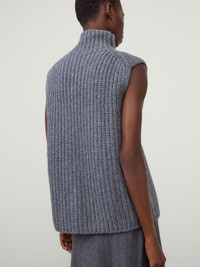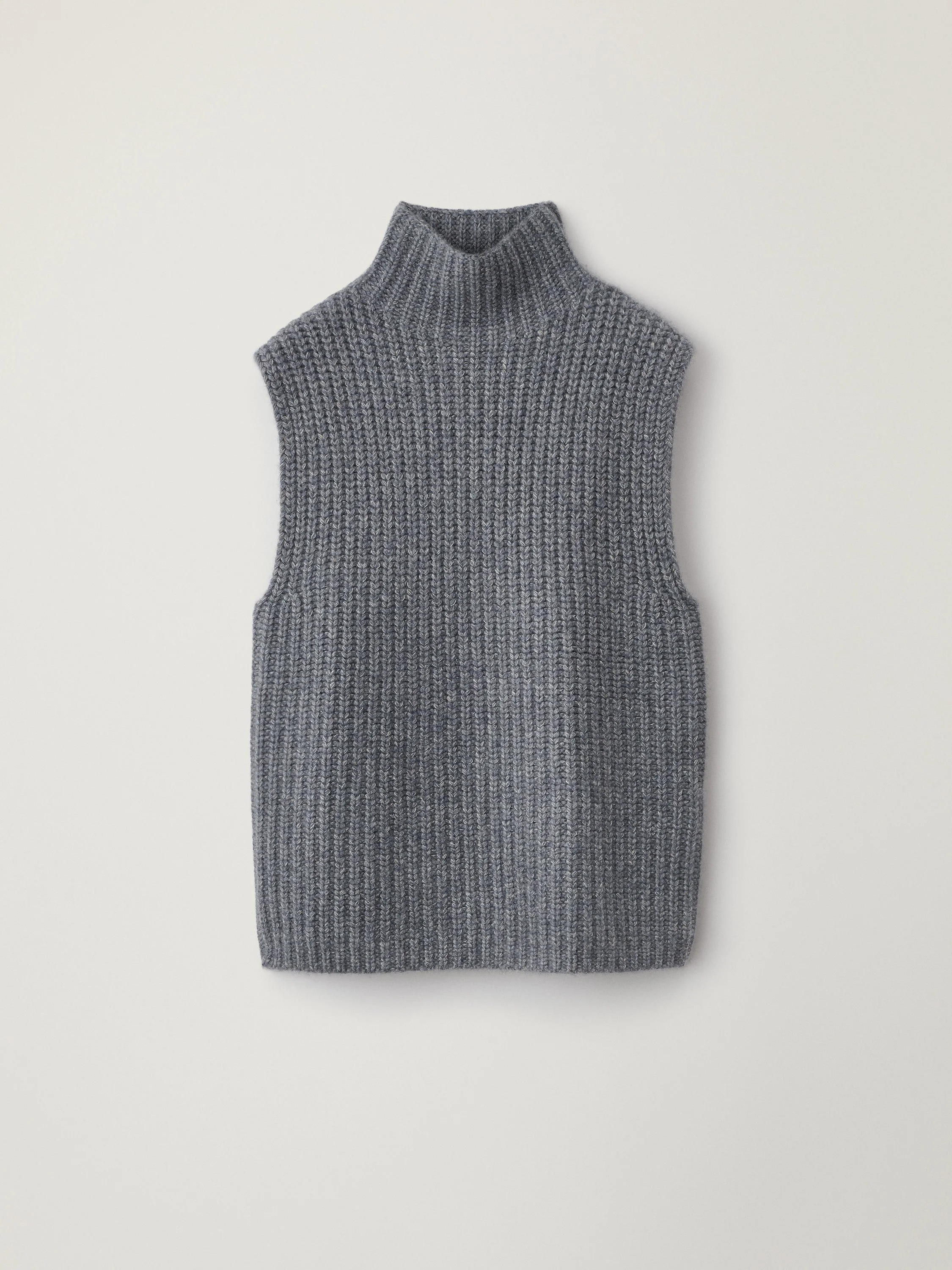 A bold new addition, the Joceylne vest is crafted in chunky Paddington knit cashmere with a new, digitally printed yarn – a specialist technique that creates a melange-like effect with an organic look and a depth of tone. The relaxed fit silhouette features a high-standing collar, a sleeveless design and a clean hem. DETAILS Knit type: Paddington Rib Gauge: 3 Weight: 505g Composition: 100% cashmere SIZE GUIDE * European sizing * Designed for a regular fit * The model is 179 cm/5’10.5” tall and wears a size 1 Our sizes: 0: XS 1: S-M 2: M-L
