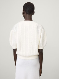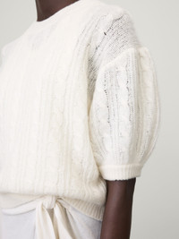A softly voluminous top, the Kenzie sweater is cable knitted in our delicate silk cashmere composition. The relaxed fit, cropped silhouette features a wide, round neckline, short puff sleeves, and ribbed trims throughout. DETAILS Knit type: Silk Cashmere Composition: 77% cashmere, 23% silk Weight: 155g SIZE GUIDE * European sizing * Designed for a regular fit * The model is 177 cm/5’9.5” tall and wears a size 1 Our sizes: Size 0: XS Size 1: S-M Size 2: M-L