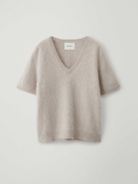<!--td {border: 1px solid #cccccc;}br {mso-data-placement:same-cell;}--> A brushed cashmere sweater, the Lovisa T-shirt is cloud-like in texture with a light and lofty feel. The regular fit silhouette is framed by a v-neck, short sleeves and a straight hem, neatly finished with ribbed edges. <!-- td {border: 1px solid #cccccc;}br {mso-data-placement:same-cell;} --> DETAILS Knit type: Brushed Weight: 285g Composition: 100% organic cashmere SIZE GUIDE * Based on European sizing * Designed for a regular fit * The model is 176 cm/5’9” tall and wears a size 1 Our sizes: 0: XS 1: S-M 2: M-L
