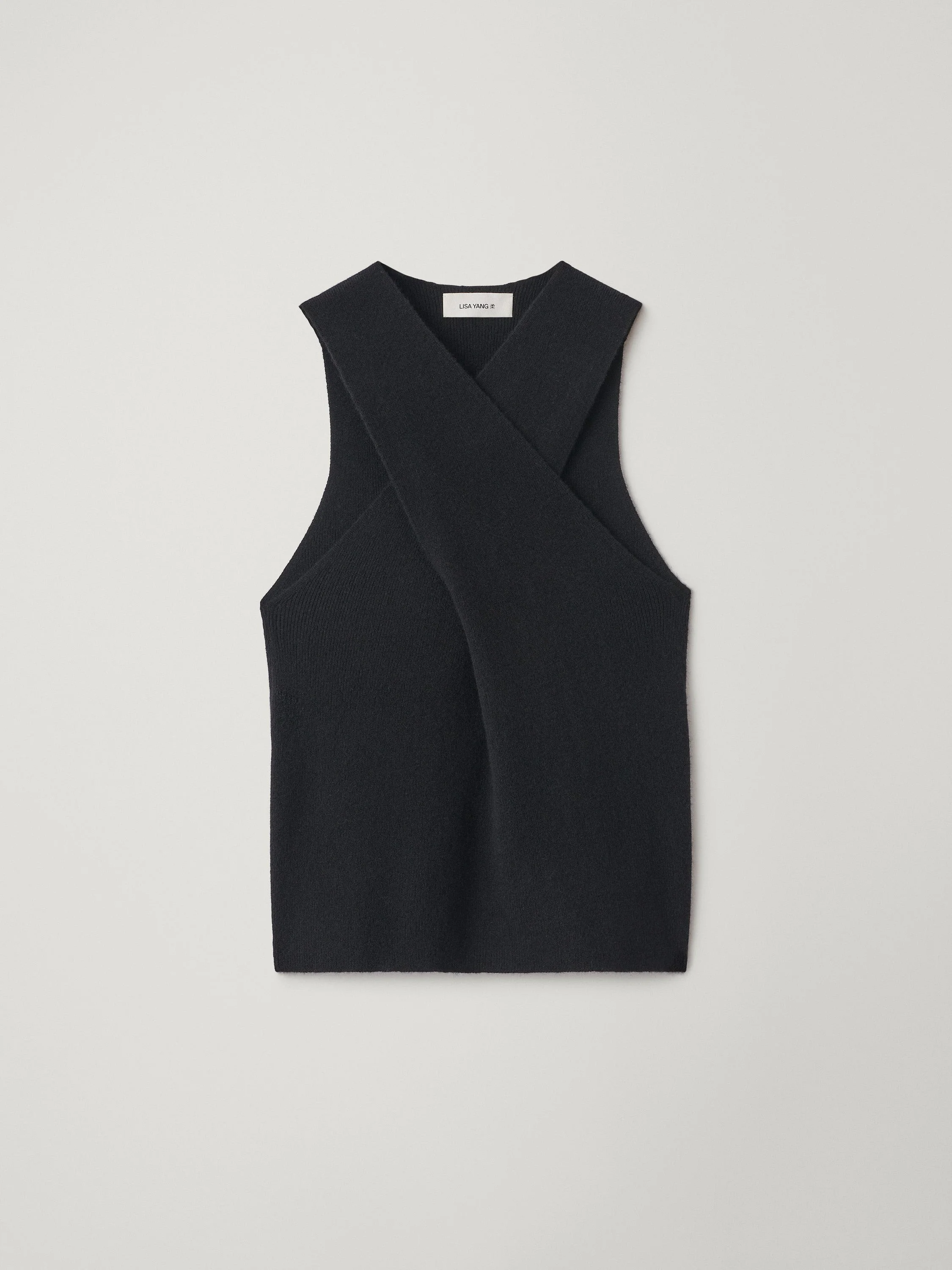 A graphic halterneck, the Lyra top is knitted in finely ribbed mid-weight cashmere for year-round wear. The regular fit, hip-length silhouette features a twisted halter neckline, a sleeveless design and a clean hem. DETAILS Knit type: Rib Knit Gauge: 12 Weight: 160g Composition: 100% cashmere SIZE GUIDE * Based on European sizing * Designed for a regular fit * The model is 179 cm/5’10.5” tall and wears a size 1 Our sizes: Size 0: XS Size 1: S-M Size 2: M-L