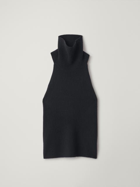 A graphic statement piece, the Maddie top is crafted in our heavy knit cashmere to a chunky look and feel. The regular fit, hip-length silhouette features a wide turtleneck, a sleeveless design with curved armholes that accentuate the shoulders, an open back and ribbed trims. DETAILS Knit type: Plain Knit Gauge: 7 Weight: 155g Composition: 100% cashmere SIZE GUIDE * Based on European sizing * Designed for a regular fit * The model is 177 cm/5’9.5” tall and wears a size 1 Our sizes: Size 0: XS Size 1: S-M Size 2: M-L