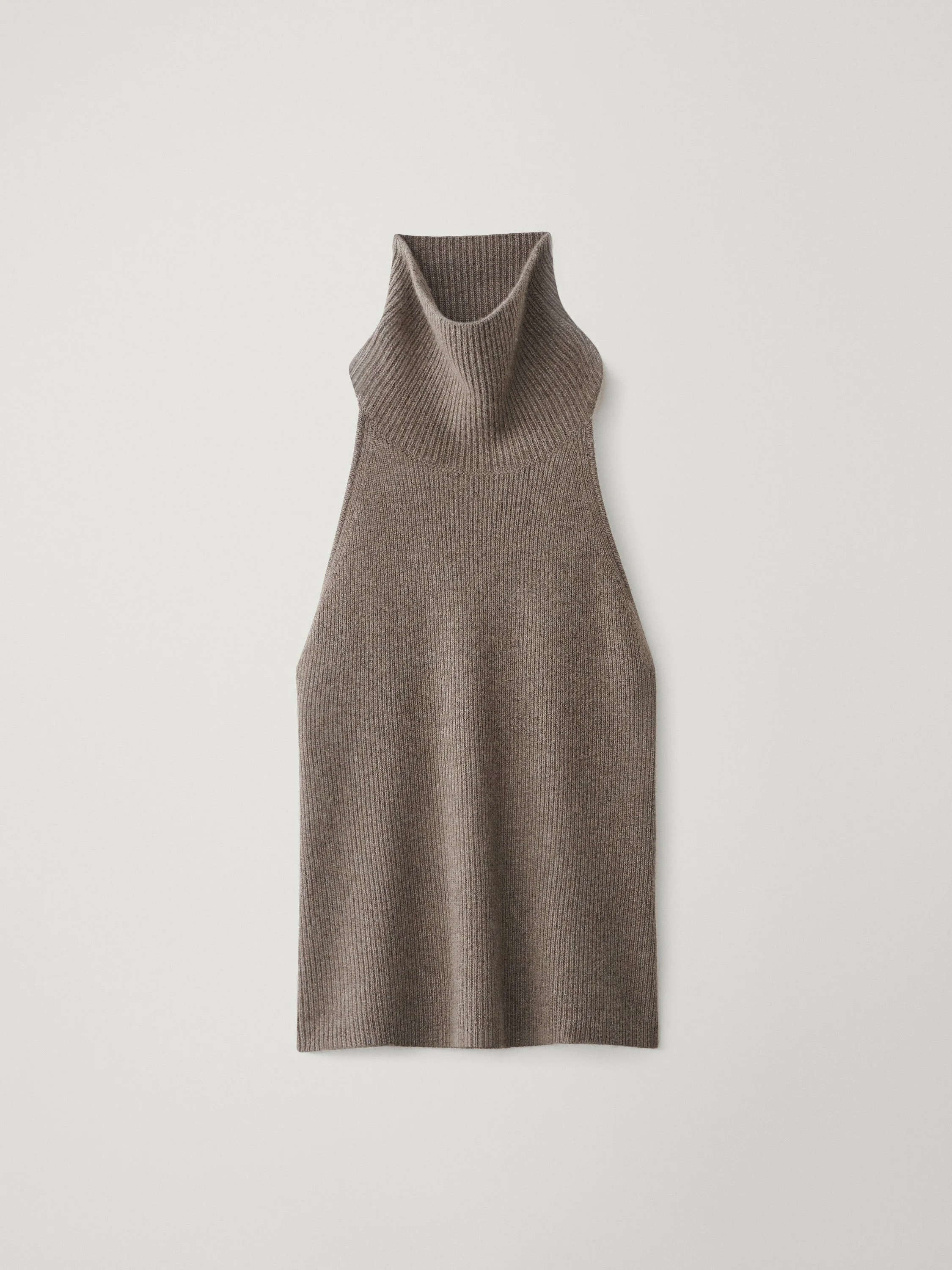 A graphic statement piece, the Maddie top is crafted in our heavy knit cashmere to a chunky look and feel. The regular fit, hip-length silhouette features a wide turtleneck, a sleeveless design with curved armholes that accentuate the shoulders, an open back and ribbed trims. DETAILS Knit type: Plain Knit Gauge: 7 Weight: 155g Composition: 100% cashmere SIZE GUIDE * Based on European sizing * Designed for a regular fit * The model is 177 cm/5’9.5” tall and wears a size 1 Our sizes: Size 0: XS Size 1: S-M Size 2: M-L