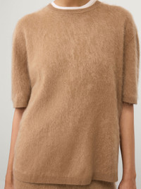 A new spring silhouette, the Maren sweater is knitted in our signature brushed cashmere that is cloud-like to the touch. The relaxed fit, hip-length silhouette is complete with a crew neck, dropped shoulders, short sleeves and ribbed trims. DETAILS Knit type: Brushed Composition: 100% cashmere Weight: 250g SIZE GUIDE * Based on European sizing * Designed for a regular fit * The model is 179 cm/5’10.5” tall and wears a size 1 Our sizes: 0: XS 1: S-M 2: M-L