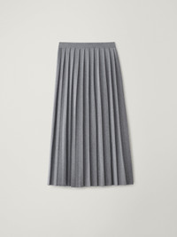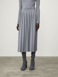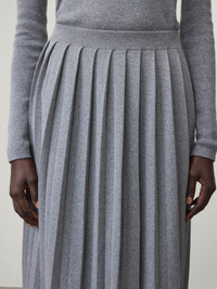 A pleated piece of knitwear, the Minda skirt is crafted in fine knit cotton cashmere with a novel plisse technique. The regular fit, 3/4 length silhouette is animated by graphic folds sculpted by pleating, and features a ribbed elasticated waistband and a clean hem. DETAILS Knit type: Cotton Cashmere Gauge: 16 Weight: 480g Composition: 70% cotton, 30% cashmere SIZE GUIDE * European sizing * Designed for a regular fit * The model is 177 cm/5’9.5” tall and wears a size 1 Our sizes: Size 0: XS Size 1: S-M Size 2: M-L