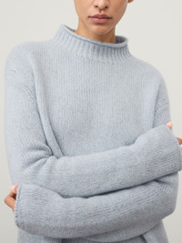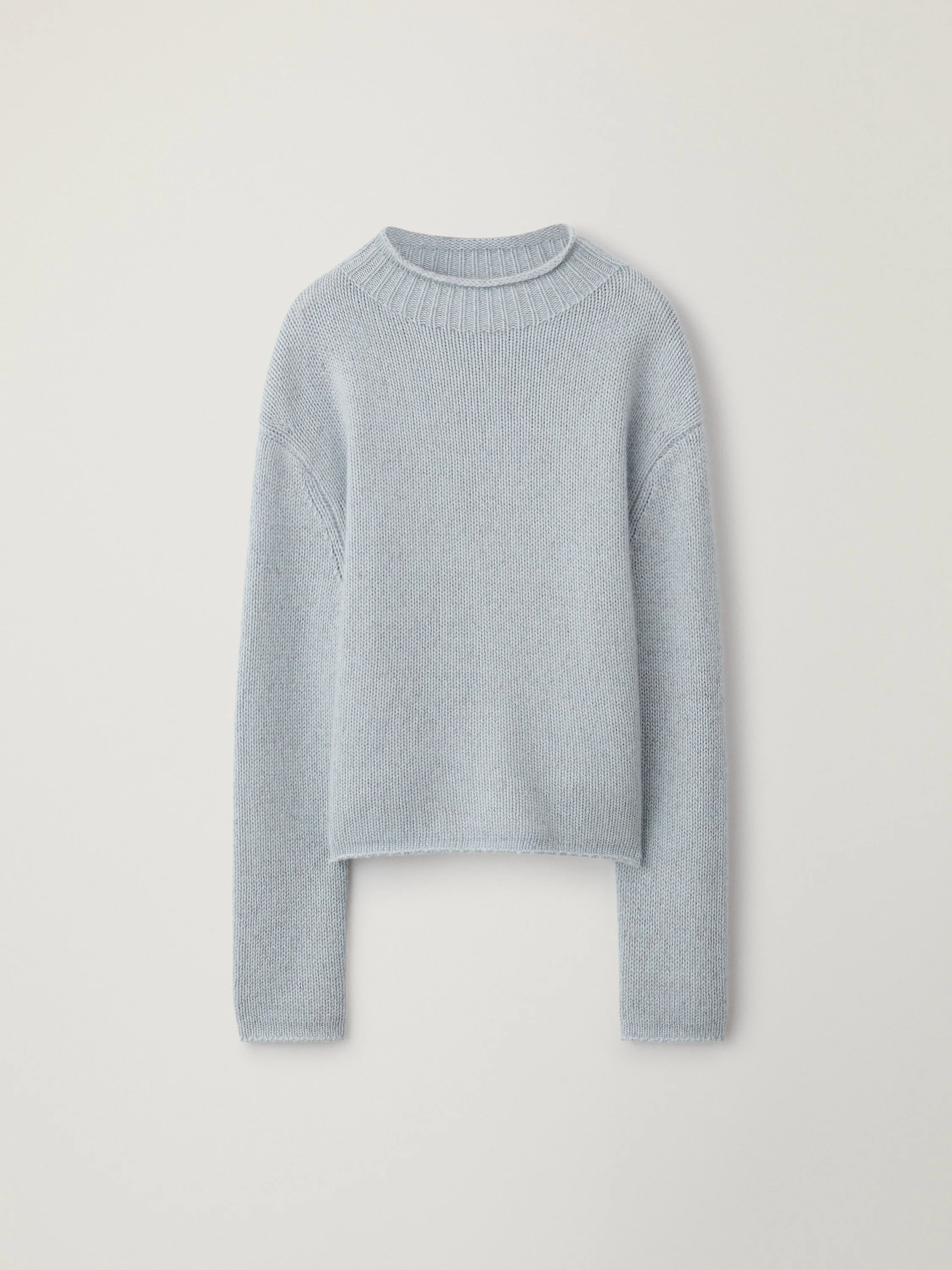 A new sweater silhouette, the Nelsy sweater is crafted in sumptuous heavy knit cashmere with a new, digitally printed yarn – a specialist technique that creates a melange-like effect with an organic look and a depth of tone. The relaxed fit, cropped silhouette features a funnel neck with raw trims, full-length sleeves and a rolled hem. Styled here with the Torie skirt. DETAILS Knit type: Plain Knit Gauge: 5 Weight: 440g Composition: 100% cashmere SIZE GUIDE * European sizing * Designed for a regular fit * The model is 177 cm/5’9.5” tall and wears a size 1 Our sizes: Size 0: XS Size 1: S-M Size 2: M-L