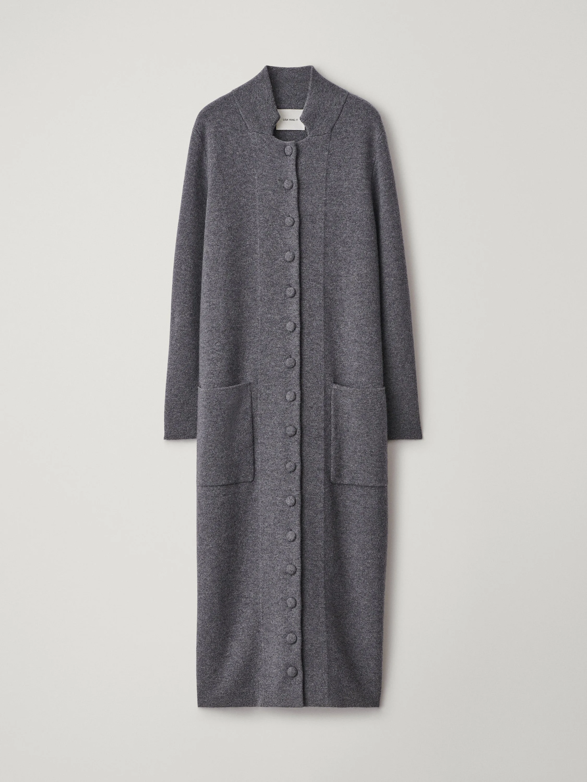 A new outerwear silhouette, the Rhea coat is crafted in our knitted double face cashmere with a luxuriously weighty hand feel. The relaxed fit, full length silhouette is structured in shape, detailed with a collared neck, full-length sleeves, patch pockets at the front and cashmere-covered buttons running artfully down the hem. DETAILS Knit type: Double Faced Gauge: 12 Weight: 860g Composition: 100% cashmere SIZE GUIDE * European sizing * Designed for a relaxed fit * The model is 180 cm/5’11” tall and wears a size 1 Our sizes: Size 0: XS Size 1: S-M Size 2: M-L