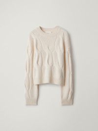 A piece with sculpted textures, the Sammie sweater is crafted in heavy knit cashmere with cables in scaled-up proportions. The relaxed fit silhouette features a crew neck, dropped shoulders, full-length sleeves and ribbed trims throughout. DETAILS Knit type: Cable Knit Gauge: 5 Weight: 560g Composition: 100% cashmere SIZE GUIDE * European sizing * Designed for a relaxed fit * The model is 180 cm/5’11” tall and wears a size 1 Our sizes: Size 0: XS Size 1: S-M Size 2: M-L