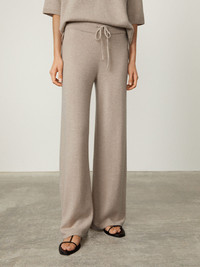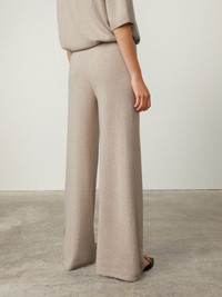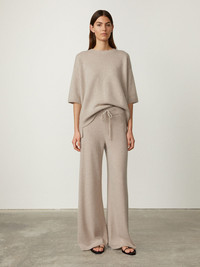 An everyday bottom, the Sofi trouser is knitted in soft, mid-weight cashmere for year-round wear. The relaxed silhouette falls from an elasticated mid waist secured with a drawstring into wide, full-length legs which drape along the ankles. DETAILS Knit type: Plain Knit Gauge: 12 Weight: 320g Composition: 100% organic cashmere SIZE GUIDE * Based on European sizing * Designed for a relaxed fit * Elastic drawstring waistband, high stretch * The model is 178 cm/5’10” tall and wears a size 1 Our sizes: Size 0: XS Size 1: S-M Size 2: M-L