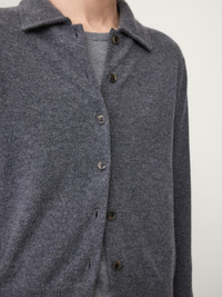 A neat new silhouette, the Suzette cardigan is crafted in mid-weight, plain knit cashmere for everyday wear. The regular fit silhouette is defined by a collared neck, a button-down fastening, full-length sleeves and a ribbed hem that ends at the hips, with inside-out seam details that punctuate the look. DETAILS Knit type: Plain Knit Gauge: 12 Weight: 240g Composition: 100% cashmere SIZE GUIDE * European sizing * Designed for a regular fit * The model is 179 cm/5’10.5” tall and wears a size 1 Our sizes: Size 0: XS Size 1: S-M Size 2: M-L