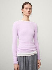 A jersey-inspired staple, the Vivian top is crafted in fine single rib knit cashmere blended with cotton for a light and lofty feel. The fitted silhouette features a round neck, full-length sleeves, a straight hem and a subtle all-over rib. DETAILS Knit type: Cotton Cashmere Gauge: 16 Weight: 170g Composition: 70% cotton, 30% cashmere SIZE GUIDE * European sizing * Designed for a close fit * The model is 179 cm/5’10.5” tall and wears a size 1 Our sizes: Size 0: XS Size 1: S-M Size 2: M-L
