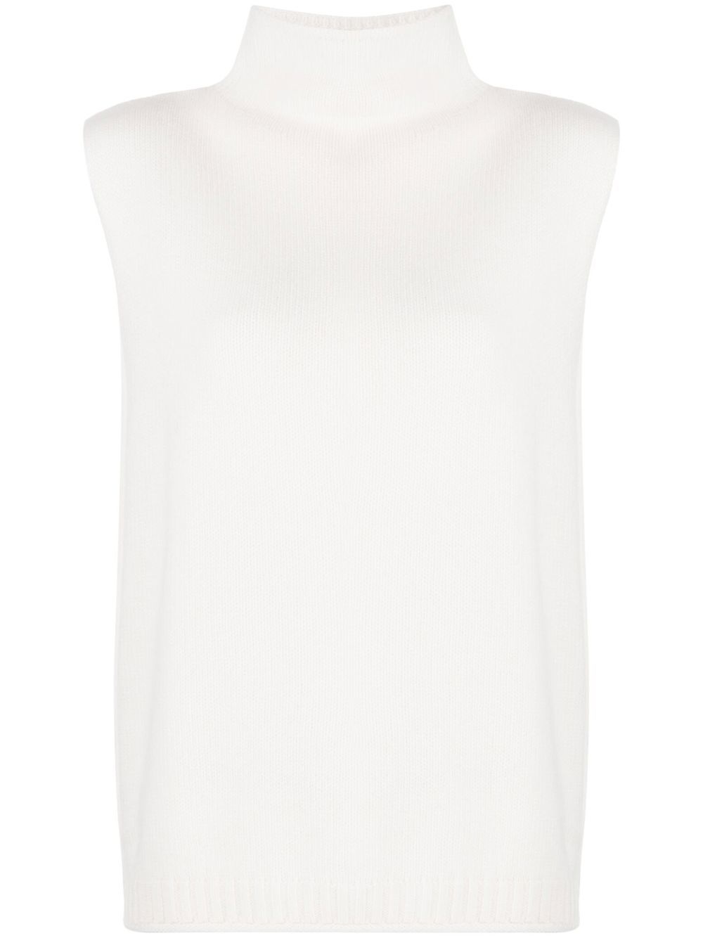The Tova cashmere vest cream white cashmere knitted construction high neck sleeveless straight hem Imported Composition Body: Cashmere 100% SIZE & FIT Model measurements Height 5 ft 10 in(1.78 m) Bust/Chest 30.7 in(78 cm) Hips 36.22 in(92 cm) Waist 23.62 in(60 cm) FittingInformation This piece fits true to size. We recommend you get your regular size Cut for a loose fit Made with a mid-weight fabric