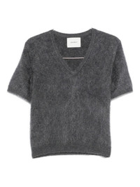 V-neck short-sleeve sweater Highlights - Graphite - Brushed texture - V-neck - Short sleeves Imported Composition Cashmere 100% SIZE & FIT Model measurements Height 5 ft 8 in(1.73 m) Bust/Chest 29.92 in(76 cm) Hips 33.07 in(84 cm) Waist 23.22 in(59 cm) Washing instructions Read Manufacturer Guidelines