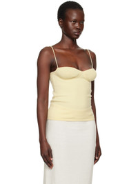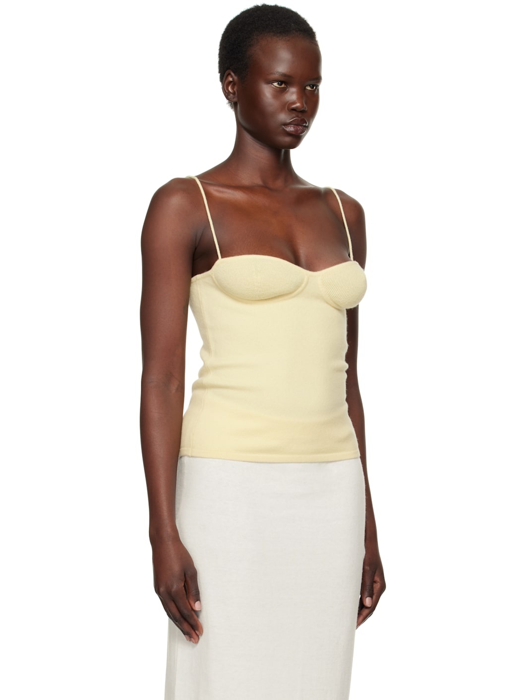 Knit and rib-knit organic cashmere camisole. · 12-gauge and 92 g · Sweetheart neck · Fixed spaghetti straps Supplier color: Lemon sorbet