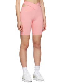 Stretch Supplex® jersey shorts in pink. · High-rise · Criss-crossing construction and cut-outs at elasticized waistband Supplier color: Thai guava 90% supplex, 10% lycra. Made in United States 221071F541008
