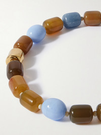 Lizzie Fortunato's collections are influenced by its founder's love of travel. Named after the Colombian coastal town, this 'Palomino' necklace is strung with cylindrical agate, angelite and gold-plated beads interspersed with tiny mother-of-pearl ones.