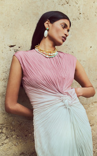 Using an eclectic mix of found materials, Lizzie Fortunato creates statement jewelry imbued with a warm optimism. This season's lineup offers jolts of uplifting color that can easily be dressed up or down. PRODUCT DETAILS - Lobster clasp fastening - Composition: Sunstone, strawberry quartz, beige glass, chrysoprase, freshwater pearl, quartz, amazonite, moonstone, hessonite, gold-plated brass - Made in the USA