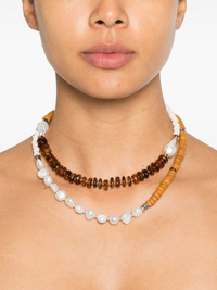 Cabana necklace Highlights - Beige and brown - Freshwater pearl embellishment - Stone embellishment - Toggle fastening - Normal everyday use and external agents may reduce the lustre of gemstones and gold surfaces. to maintain, use specific, non-abrasive products specially meant for cleaning jewellery. - Pearls should be the last thing that you put on in the morning and the first thing you take off at night. avoid contact with perfumes or creams, and simply wipe with a soft cloth to clean. Made in United States SIZE & FIT Model measurements Height 5 ft 9 in(1.76 m) Bust/Chest 31.88 in(81 cm) Hips 35.43 in(90 cm) Waist 24.8 in(63 cm) Measurement Length when open 35 in(88.9 cm)