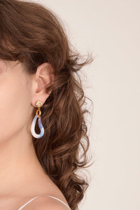 The Lizzie Fortunato Galina Earrings features the unique look you love from this designer. These earrings are crafted in gold-plated brass, with green amethyst tops and opalescent flame-worked glass teardrop hoops. FIT DETAILS - Earrings - Gold-plated brass, green amethyst, flame-worked glass - Sterling silver posts - Drop: 1.75"