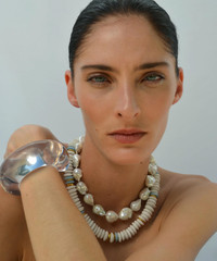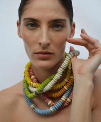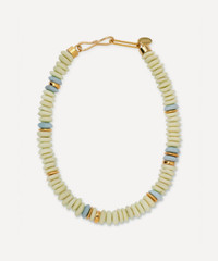 DETAILS Beaded necklace Gold-plated brass White and blue glass beads Gold-plated rondelles S hook fastening COMPOSITION & SIZE Gold-Plated Brass; Glass L: 45cm