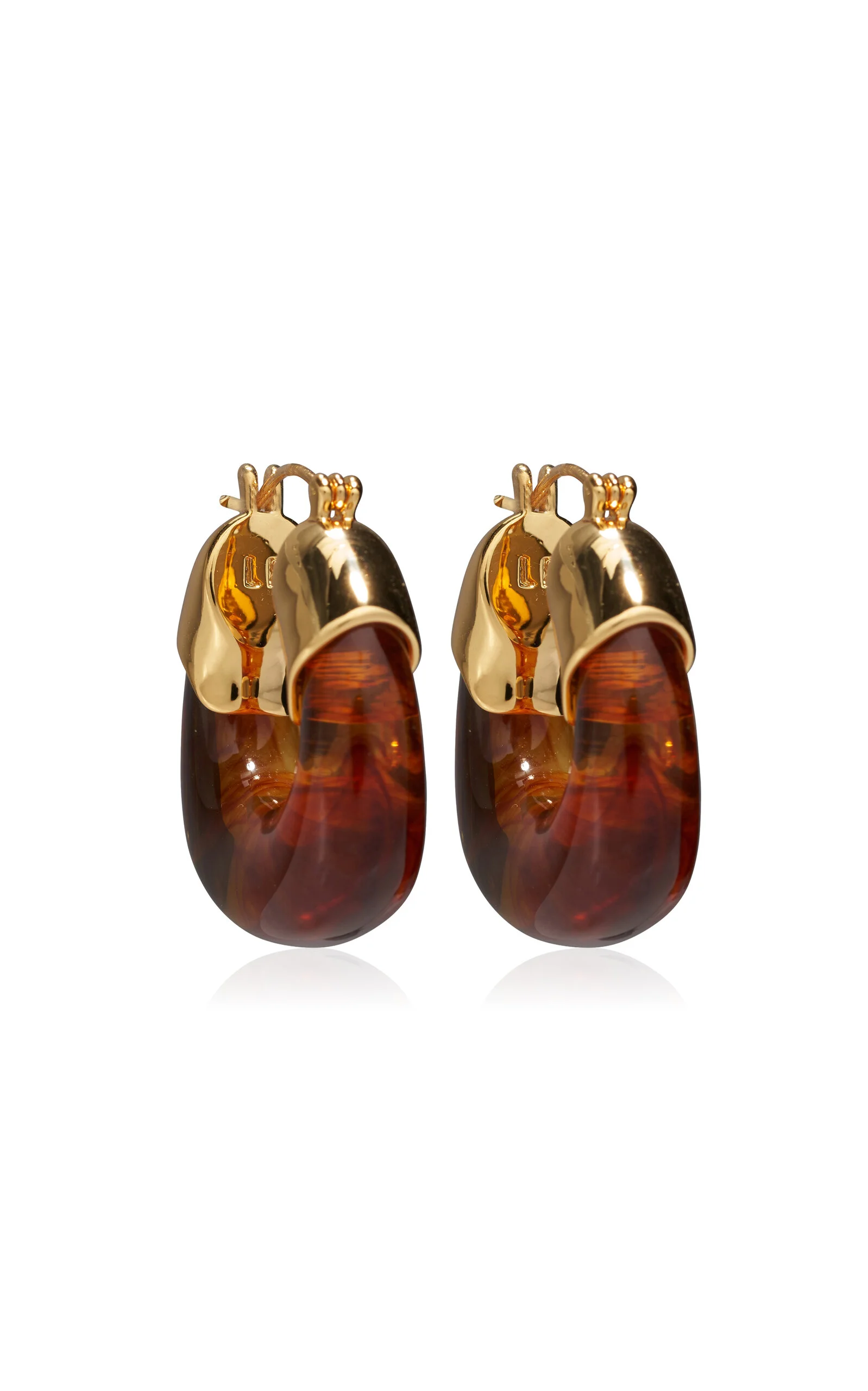 PRODUCT DETAILS - Gold-plated brass and marbled tortoise-colored resin acrylic hoop earrings , Gold-plated brass, marbled tortoise-colored resin - Hoop - Composition: Gold-plated brass, marbled tortoise-colored resin - Made in the China