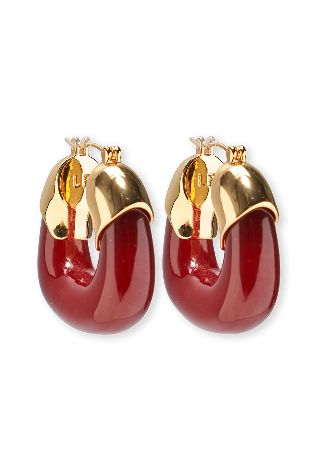 DETAILS AND INSIGHT Lizzie Fortunato organic hoop earrings in currant. Gold-Plated Brass, Resin 1.5" D Style R25-E010