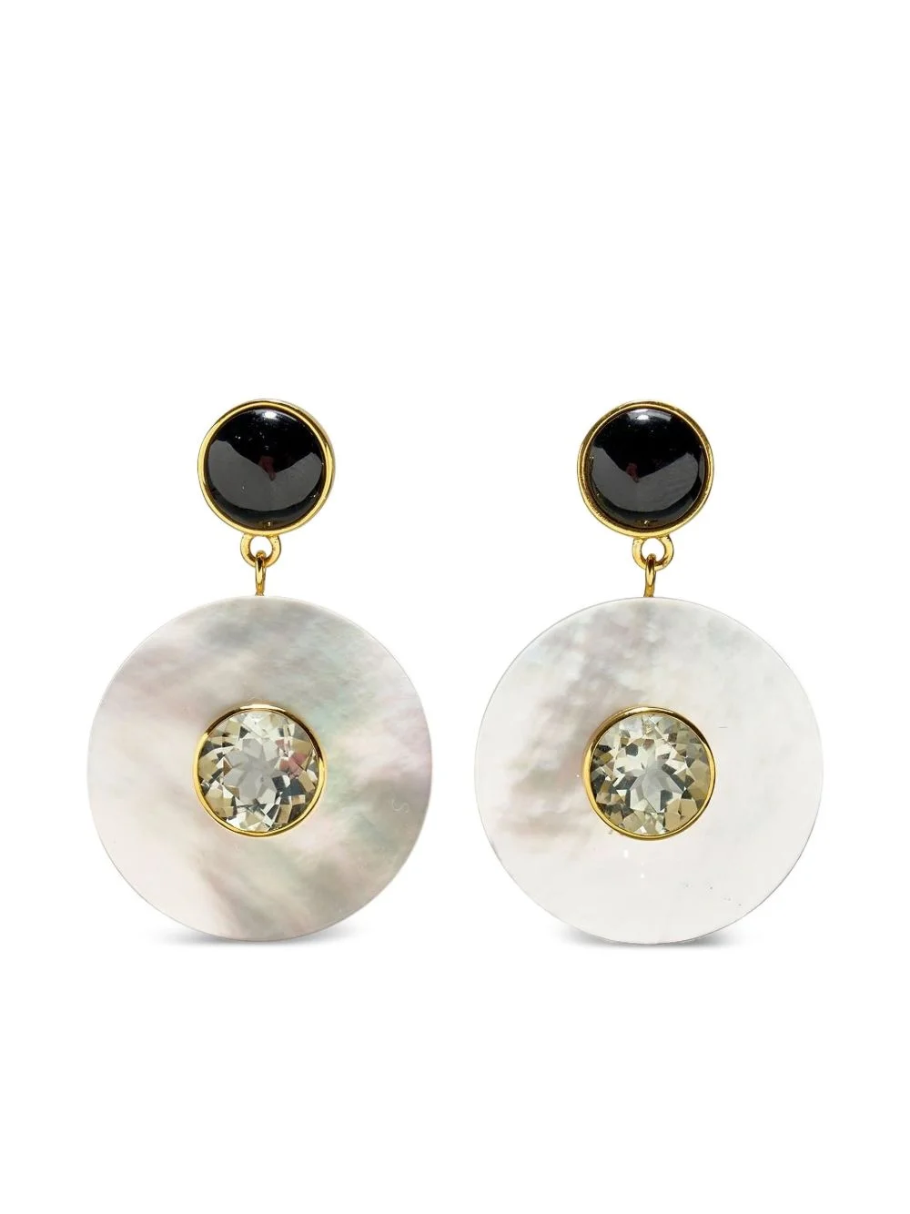 Taj mother-of-pearl disc earrings Highlights - Gold-tone - Mother-of-pearl disc - Black agate stone - Green amethyst gemstone - Post-back fastening - These earrings come as a pair. Made in United States